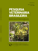O objetivo deste trabalho foi avaliar a patogenicidade, em ovinos, de uma cepa de Actinobacillus seminis isolada de caprino no Brasil. Foram utilizadas amostras de sêmen, punção e fragmentos de epidídimo, ducto deferente, testículos e glândulas seminíferas de dois caprinos (animais 1 e 2) e dois ovinos (animais 3 e 4), e foram realizados exame histopatológico, cultivo microbiológico e diagnóstico molecular. O inóculo foi preparado com solução salina na diluição de 10⁻² correspondendo ao padrão 1,0 da escala de McFarland, com colônias previamente cultivadas de A. seminis e administrado no volume de 2 mL pelas vias intra-prepucial (animais 1 e 3) e na cauda do epidídimo (animais 2 e 4). Na avaliação clínica observou-se aumento unilateral de consistência firme após 30 dias no epidídimo e testículo do animal 4 que continuou até o dia da eutanásia, bem como o animal 1 apresentou discreto aumento unilateral dos testículos. As lesões macroscópicas e microscópicas observadas nos animais 3 e 4 foram compatíveis com aquelas causadas pela infecção por A. seminis. A. seminis foi isolado de material de punção e sêmen de um ovino (animal 4). Conclui-se que o modelo de infecção experimental utilizando caprinos e ovinos comprovou a patogenicidade da amostra de A. seminis, isolada de um caprino no semiárido brasileiro e reproduzida em um ovino, comprovando a predileção do agente pelo epidídimo, com quadro clinico, achados histopatológicos, isolamento bacteriano e diagnóstico molecular positivo. |