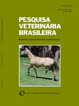 The epidemiology, clinical, gross and histological findings of cases of stringhalt occurring in horses from eight farms in six counties in the State of Rio Grande do Sul, Brazil from 2000-2005 are reported. At least 10 horses were affected. Ages of affected horses were 1-13 years (average 6.2 years) and 1-2 horses were affected in each farm. Factors that might have influenced the appearance of the disease included dearth of forage due to insufficient rainfall. The presence of the plant Hypochaeris radicata, often implicated as a cause of stringhalt in horses, was observed in the pasture of three out of five evaluated farms and in six of these farms the pasture was poor due to scarse precipitation. Estimated morbidity was 17.3% and lethality was close to zero although two horses were euthanatized for necropsy. Characteristic clinical signs included excessive flexion of the stifle and hock joints, impaired ambulation and bunny hop-type of gait. Clinical disease was graded by number scores from 1-5, higher numbers indicating increasing severity. Three horses were graded as 1, one horse as 2, three horses as 3, one horse as 4 and two horses as 5. Treatment with phenytoin in two horses and with phenytoin and tenectomy in another one did not result in amelioration of the clinical signs. Four out of ten clinical examined horses with stringhalt recovered with no treatment within 2-4 months of clinical disease and four affected horses did not recover even after 9-17 months of clinical disease, when they were lastly examined. Necropsy findings included atrophy of skeletal muscle of the large muscular groups which was confirmed histologically. Histological evaluation of peripheral nerves of one of the euthanatized horses revealed reduction or absence of myelinated fibers. Ultrastructural findings included signs of demyelination, regeneration and remyelination of peripheral nerves. |