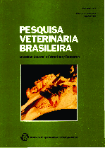 Salmonella strains were isolated from ill and shedding birds in several regions of Brazil between 1962 and 1991. Serotyping of 2123 isolates showed 90 serovars pertaining to 14 serogroups. There was a predominance of groups 0:9 (40.0%), 0:4 (33.3%), 0:7 (10.6%) and 0:3, 10 (6.7%). Major serovar diversity was found to serogroup 0:7 that accounted for 22 different types, followed by serogroups 0:4, 0:3, 10 and 0:9 with 19, 15 and 10 serotypes respectively. An average of 10.8 serovars was isolated per year. S. Gallinarum, S. Pullorum, S. Typhimurium, S. Heidelberg, S. Enteritidis and S. Infantis were the most frequent serovars found over the 30 years, representing 65% to 67% of the total of isolates. Bacteriological and epidemiological aspects concerning a number of serotypes are discussed. |