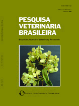 Cases of rabies in sheep occurring in November 2003, in central Rio Grande do Sul state, Brazil, are described. A 3-month-old male, and a 2.5-month-old female sheep were affected. Clinical signs were characterized by abnormal gait, trembling, lateral recumbency, convulsion, opisthotonus, and fever. Histological findings included a non-suppurative myelomeningoencephalitis associated with intracytoplasmic eosinophilic inclusion (Negri) bodies in neurons. Lesions were predominantly observed in gray matter of the spinal cord, brainstem and cerebellum. There was non-suppurative Gasserian ganglionitis in one sheep in which this structure was examined. Immunohistochemistry using rabies virus ribonucleoprotein polyclonal antibody yelded positive result in brain tissue from both sheep. The cases herein reported occurred concomitantly to an outbreak of bat transmitted rabies in cattle in the same region and were considered, on epidemiological basis, to be transmitted by bats, as occurs in endemic bovine rabies in Rio Grande do Sul. |