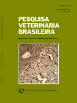 The aim of this paper is to describe the clinical, epidemiological, pathological, bacteriological and immunohistochemical aspects of a pneumonia outbreak in a wild pig farm in the Distrito Federal, Brazil. Ninety wild pigs died in a period of five months, and 63 of these had pulmonary lesions. Clinically, the pigs presented reduced growth rate, anorexia, lethargy, cough and dyspnea, especially after they were moved. High body temperature (40oC in average) was verified in some animals. Auscultation revealed moderate pulmonary crepitation and stertors. Pulmonary gross lesions were typical of lobular bronchopneumonia. Lung lesions were characterized by ventral-cranial consolidation in the majority of the cases. The color of affected pulmonary areas varied from diffuse dark red to mosaic pattern (dark red lobule intercalate by grayish lobule) or diffusely grayish. The majority of the lungs had mucopurulent exsudate in the bronchial lumen that also drained from the parenchyma cut surface. Upon microscopy, the changes were characterized by purulent and histiocytic bronchopneumonia with necrotic foci. In some animals, there was BALT hyperplasia associated with perivascular and peribronchial plasma cells and lymphocytes infiltration in most of these cases. Bordetella bronchiseptica and Streptococcus spp. were the most frequently isolated bacteria. Immunohistochemistry evaluation demonstrated Mycoplasma hyopneumoniae on the luminal surface of bronchial and bronchiolar epithelial cells, and the DNA of bacteria was detected by PCR. This is the first report of bronchopneumonia in wild boars associated with M. hyopneumoniae infection. |