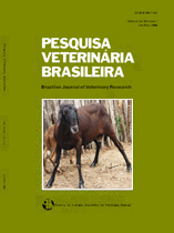 An outbreak of poisoning by Arrabidaea corallina (Jacq.) Sandw. (Fam. Bignoniaceae) in goats is reported, which occurred in the municipality of Boqueirão, semiarid of Paraíba, during the dry season. In a flock of 550 goats, older than one year of age, 56 (10%) were affected and 6 (1%) died. Clinical signs were diarrhea, increased ruminal movements and depression. The goats recovered after being moved to another paddock. The pasture had low forage availability and large amounts of A. corallina was the only other green plant observed. One goat was necropsied. The gut had liquid, fetid and blackish content, and showed catarrhal enteritis. Histology revealed acute, diffuse and moderate enteritis. Eimeria sp. was also observed. Non significant macroscopic or histological lesions were seen in other tissues. The disease was experimentally reproduced in four goats after the administration of fresh leaves of A. corallina, at 3-6 daily doses of 15g per kg of body weight. The animals showed diarrhea 3-4 days after the beginning of administration and recovered 5-6 days afterwards. It is concluded that the plant is responsible for the outbreak of diarrhea in goats, but parasitic disease or malnutrition can be contributing factors to the animal death. Goats should be withdrawn from paddocks with A. corallina if during the dry seasons no other forage is available. |
