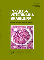 Toxoplasmosis is a worldwide zoonosis caused by Toxoplasma gondii. Epidemiological surveys of T. gondii infection among livestock have great economical importance since this infection may cause abortion, growth retardation and neonatal mortality, with significant losses to breeders. In regard of public health, human infection can be acquired by ingestion of meat or milk in natura from infected livestock. The aim of this study was to assess the toxoplasmosis seroprevalence by indirect immunofluorescence antibody test (IFAT) in goats and sheep, in three counties of Rio de Janeiro state, from 10 different farms. The seroprevalences of anti-T.gondii IgG antibodies were 29.12% (60/206) in goats and 38.05% (137/360) in sheep, with titers ranging from 64 to 256, suggesting chronic infection. Association of each of the following epidemiological factors: female gender, adult age, extensive management system, grazing pasture and drinking lake water with seropositivity was observed only in sheep (p£0.05). Improvement in breeding conditions may reduce the sources of infection in herds. |