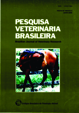 Neste estudo de microsco-pia eletrônica de transmissão utilizou-se um isolado de Babesia equi obtido a partir de um eqüino esplenectomizado, oriundo do município de Santa Luzia, Minas Gerais, Brasil. O isolado foi inoculado em dois potros esplenectomizados (1,05 x 1010 eritrócitos parasitados com B. equi). Os trofozoítos apresentaram uma membrana simples em· contato direto com o citoplasma das· hemácias, núcleo proeminente, retículo endoplasmático liso e rugoso bem desenvolvidos, numerosos ribosomos livres e pequenos vacúolos alimentares. Em trofozoítos de B. equi foi observado citostoma e uma longa estrutura tubular de alimentação em contato direto com o plasma sangüíneo.